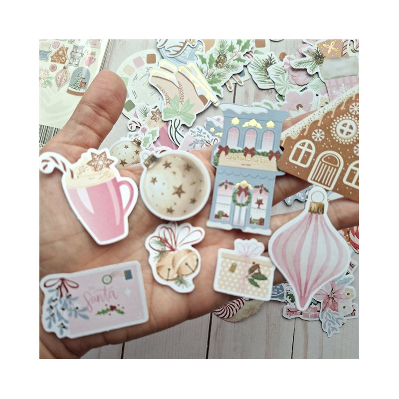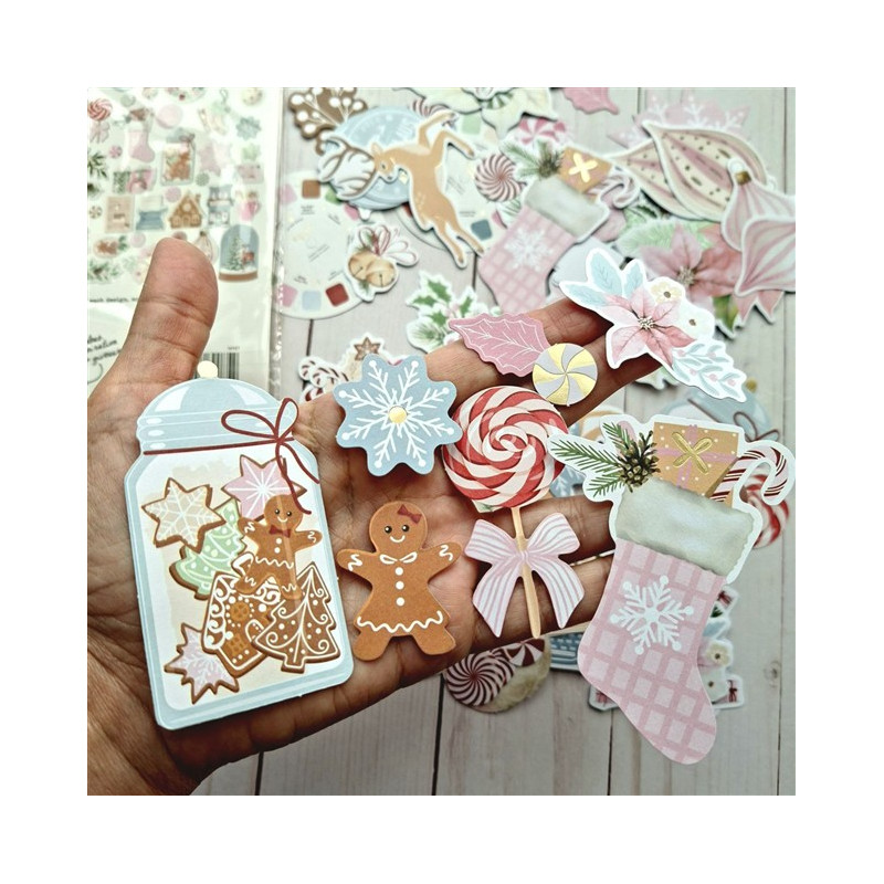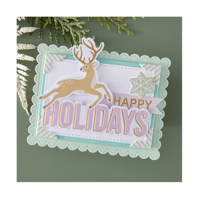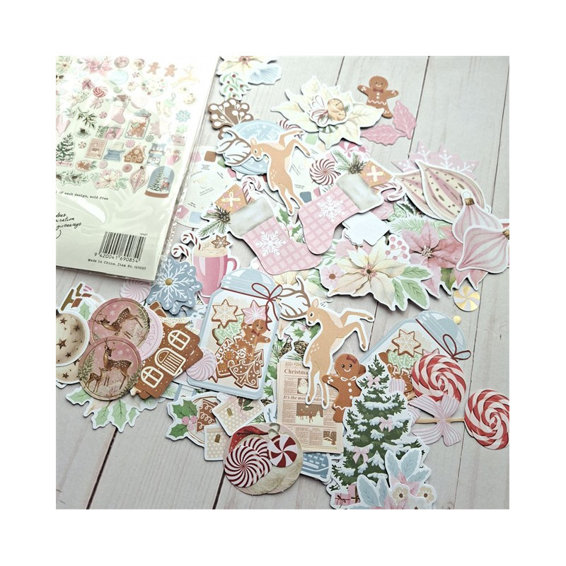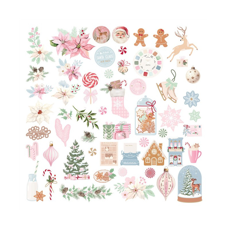 Questo bellissimo kit è composto da diecuts, parte dei quali con inserti in foil oro, abbinati alla collezione Rosie's Studio Peppermint Twist