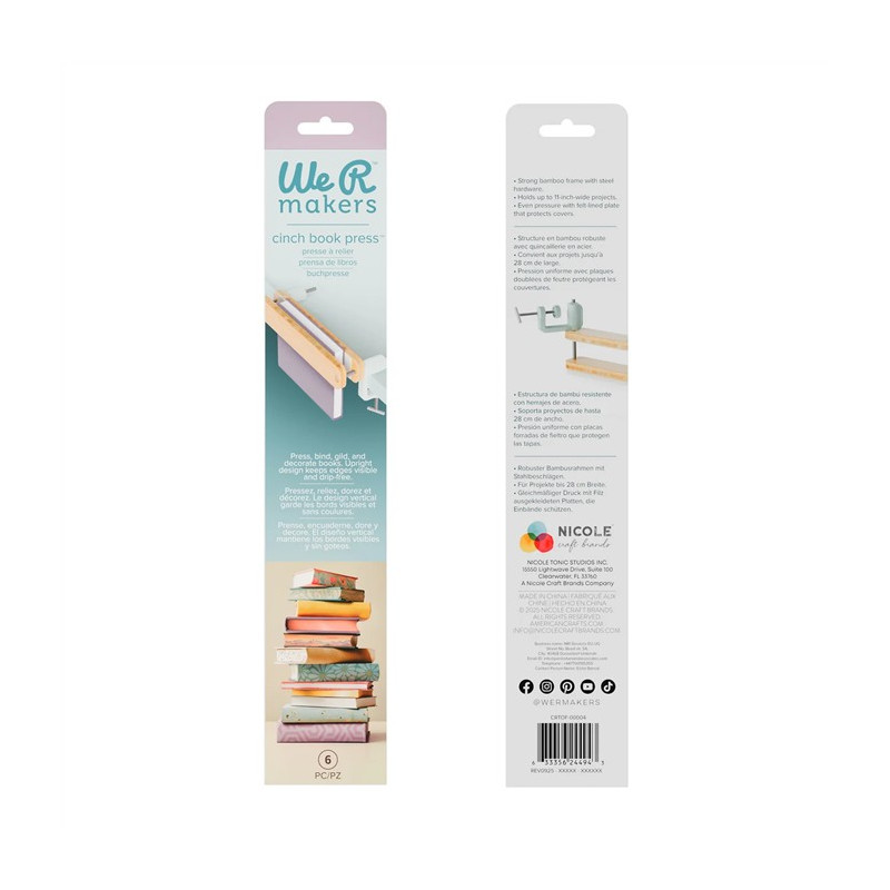 La pressa per libri We R Makers Cinch è lo strumento ideale per la rilegatura e i progetti creativi. Progettata con una robusta struttura in bambù e componenti in acciaio, esercita una pressione uniforme e costante per appiattire le pagine, riparare i dorsi e tenere ferme le copertine mentre la colla si asciuga. Usala in piano sul tavolo o fissala in verticale per mantenere i bordi visibili e senza gocciolamenti: perfetta per incollare, dorare o imprimere la colla sui bordi dei libri. La sua piastra rivestita in feltro protegge le copertine e garantisce una finitura pulita e uniforme. Che tu stia creando diari, pressando fiori o restaurando libri, questa versatile pressa offre precisione e durata.