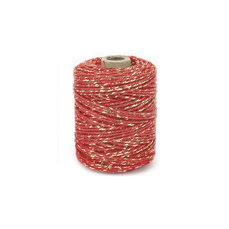 Matassa di cotone al 100% nei colori mattone e oro, adatto per molteplici usi: decorazioni, packaging, cucito creativo e scrapbooking. Perfetti per personalizzare i propri lavori artigianali.