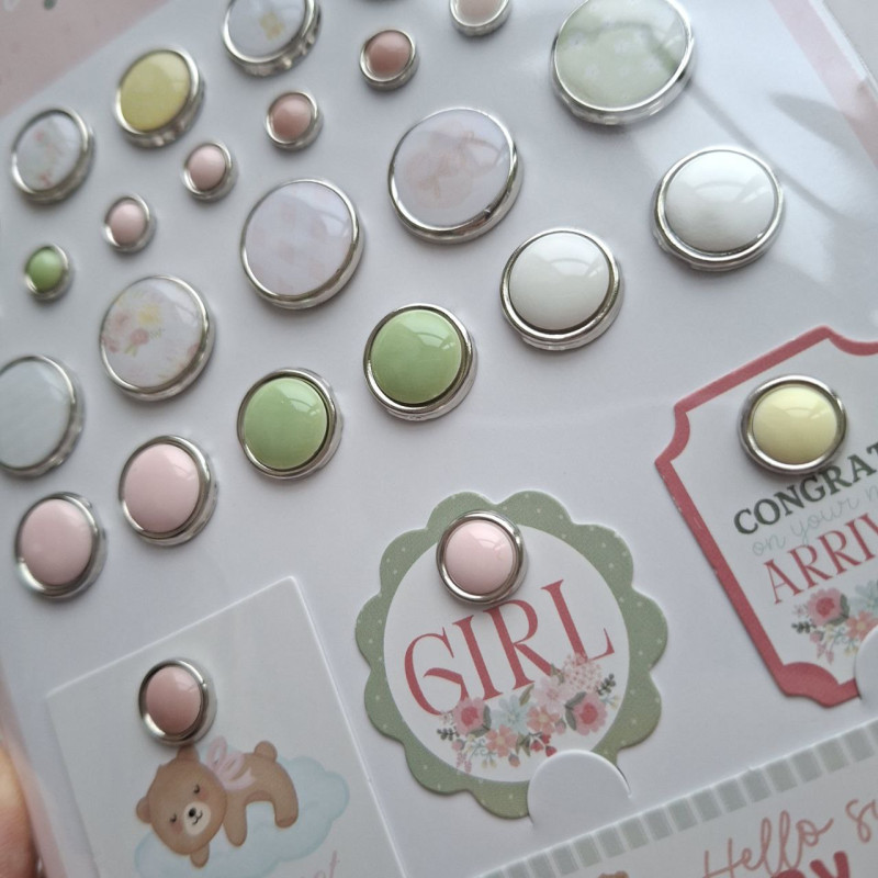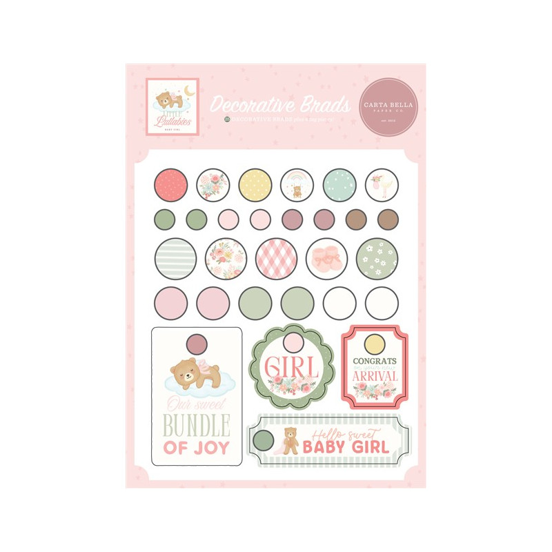 Carta Bella Little Lullabies Baby Girl Adhesive Brads 25pz+4 Chipboard