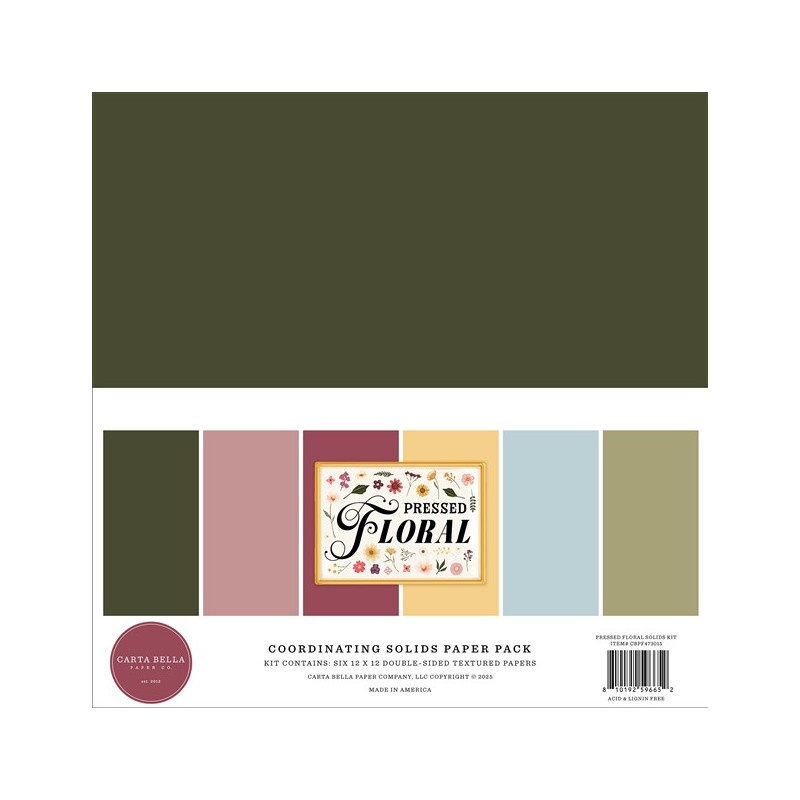 Carta Bella Pressed Floral Coordinating Solids Paper Pack 30x30cm