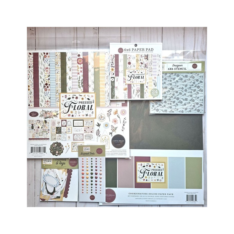 Kit composto da 6 fogli double-face abbinati alla collezione Carta Bella Pressed Floral. I fogli non sono lisci, ma hanno un EFFETTO TELA.