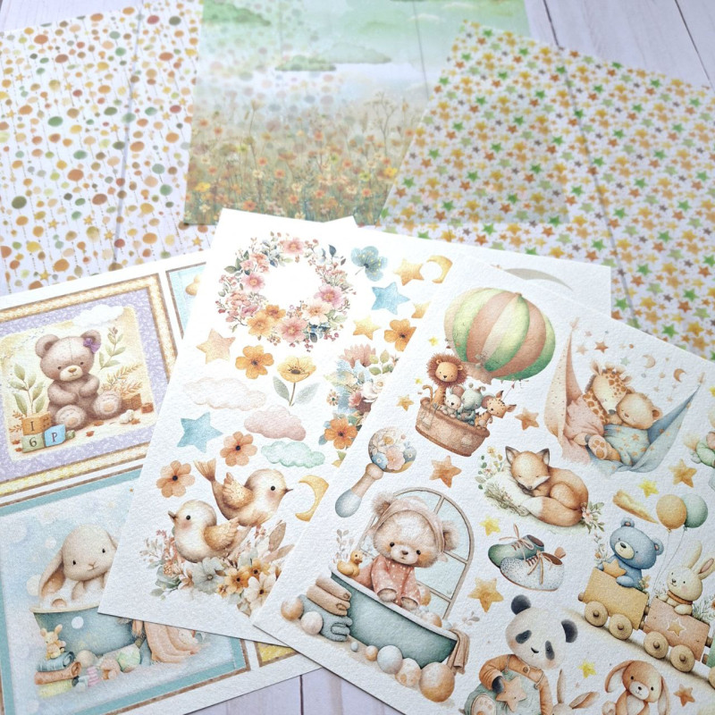 6 fogli single face (3 fogli deluxe + 3 fogli vellum), 6 diversi design