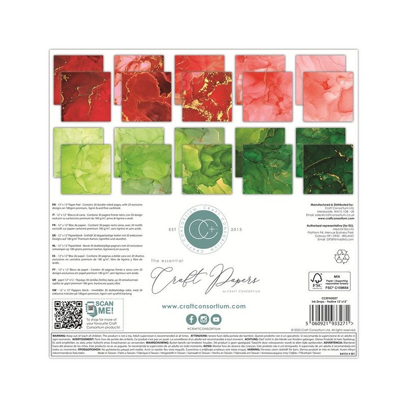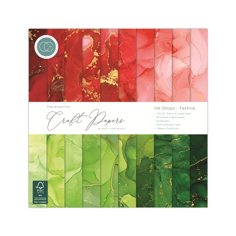 Craft Consortium Essential Craft Papers Ink Drops Festive Paper Pad 30x30cm