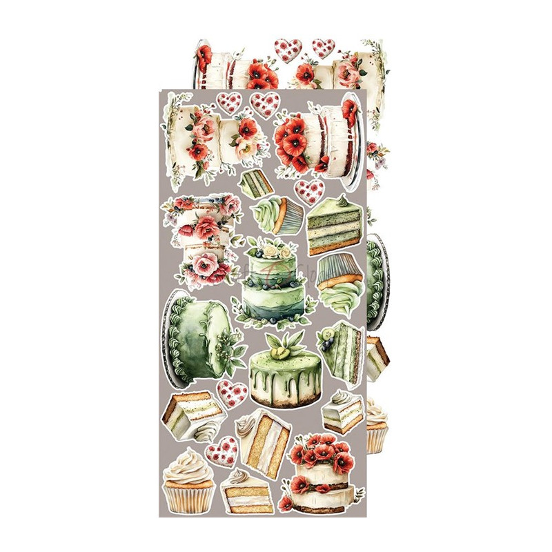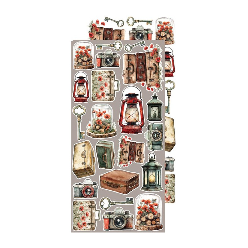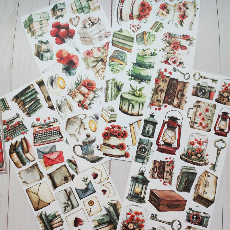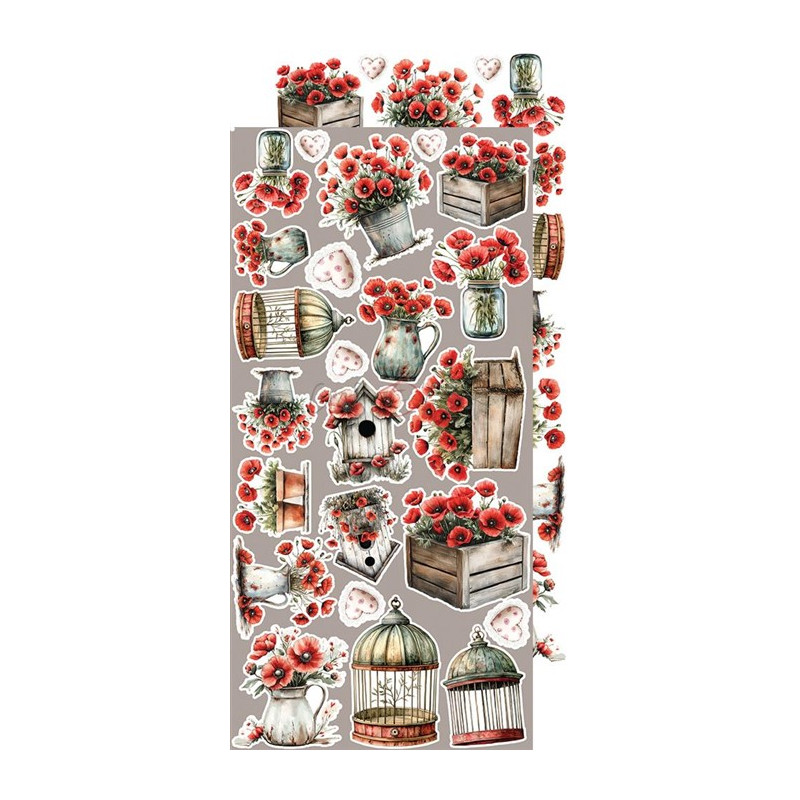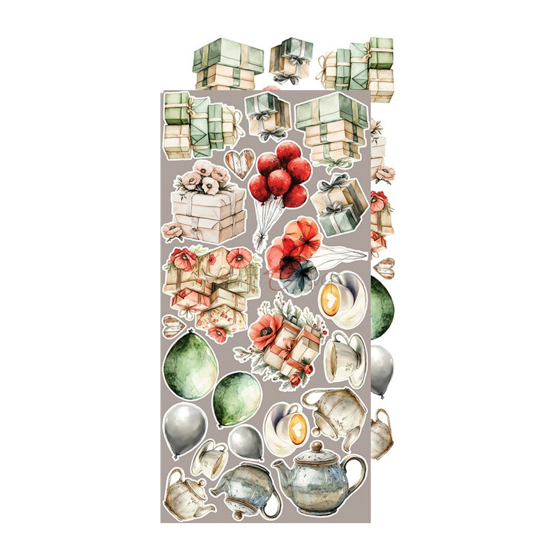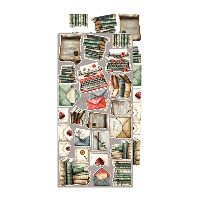 Set di 18 fogli di cartoncino per scrapbooking, 18 design diversi, + extra dietro la copertina, con elementi da ritagliare.