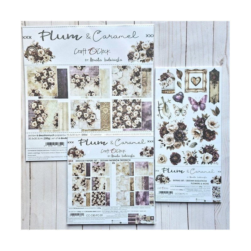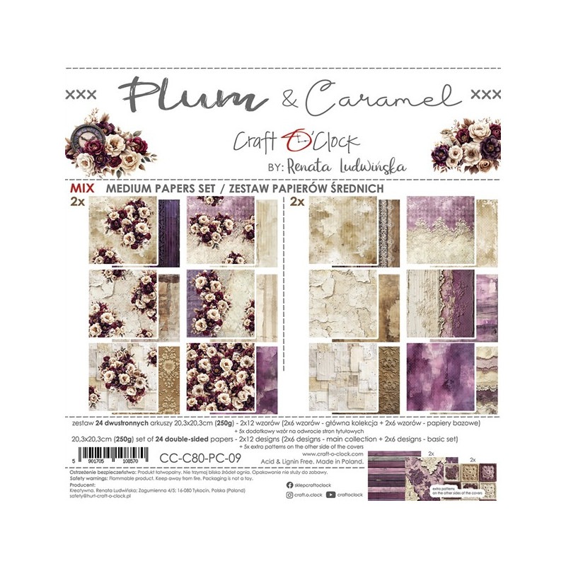Craft o' Clock Plum And Caramel Paper COLLECTION and BASIC designs Set 20x20cm 24fg