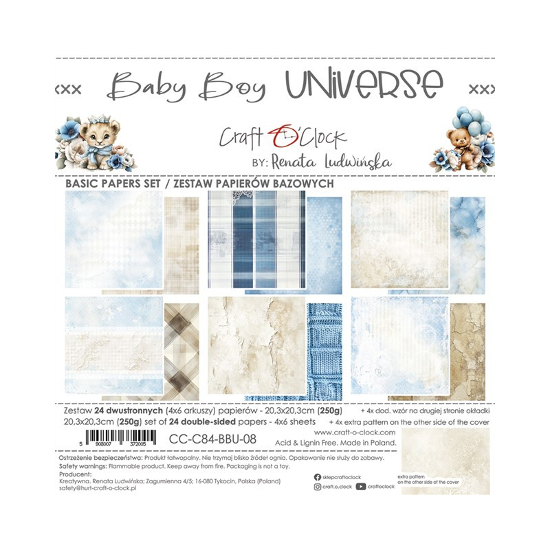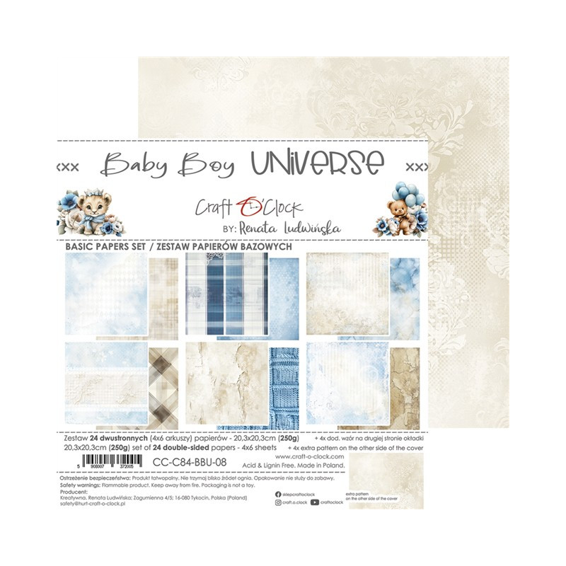 Craft o' Clock Baby Boy Universe BASIC PAPER Set 20x20cm 24fg