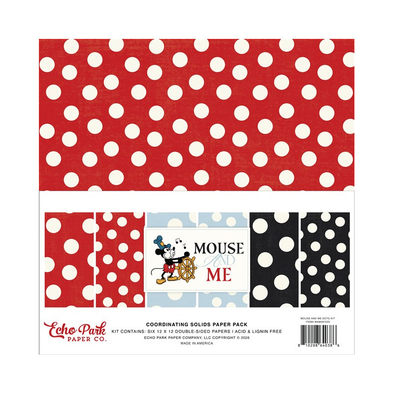 Questo kit è composto da 6 fogli double-face, nei colori abbinati alle carte Echo Park Mouse and Me.