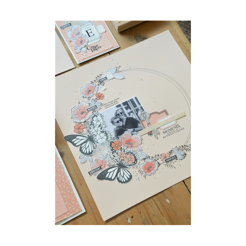Questo kit è composto da fogli 10 double face monocolore, abbinati alla collezione Florileges MURMURES