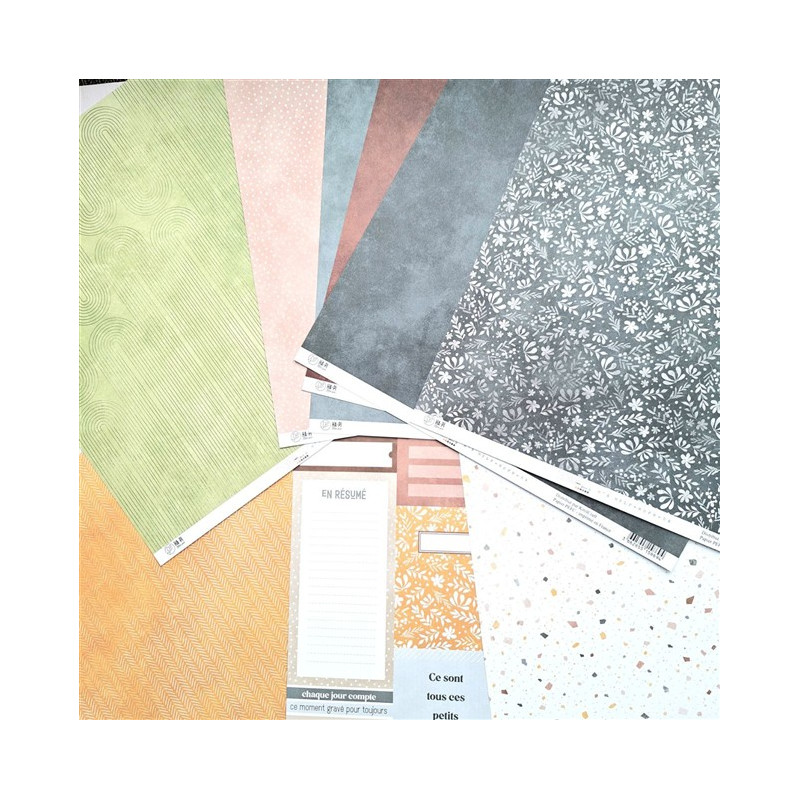 Collezione di carte composta da 9 fogli double face, cui 3 monocolore abbinati.