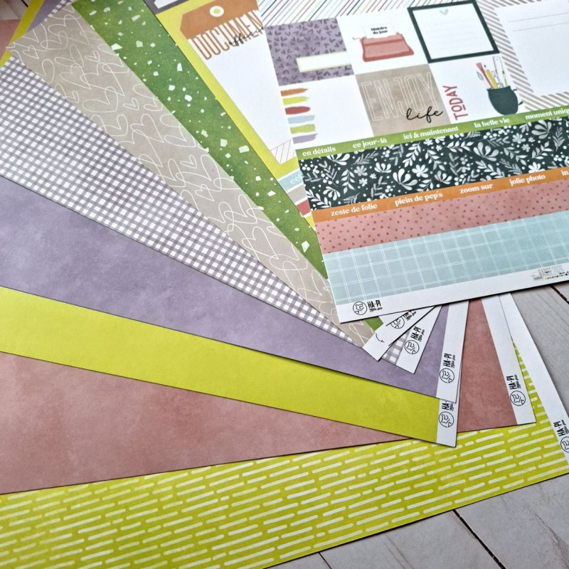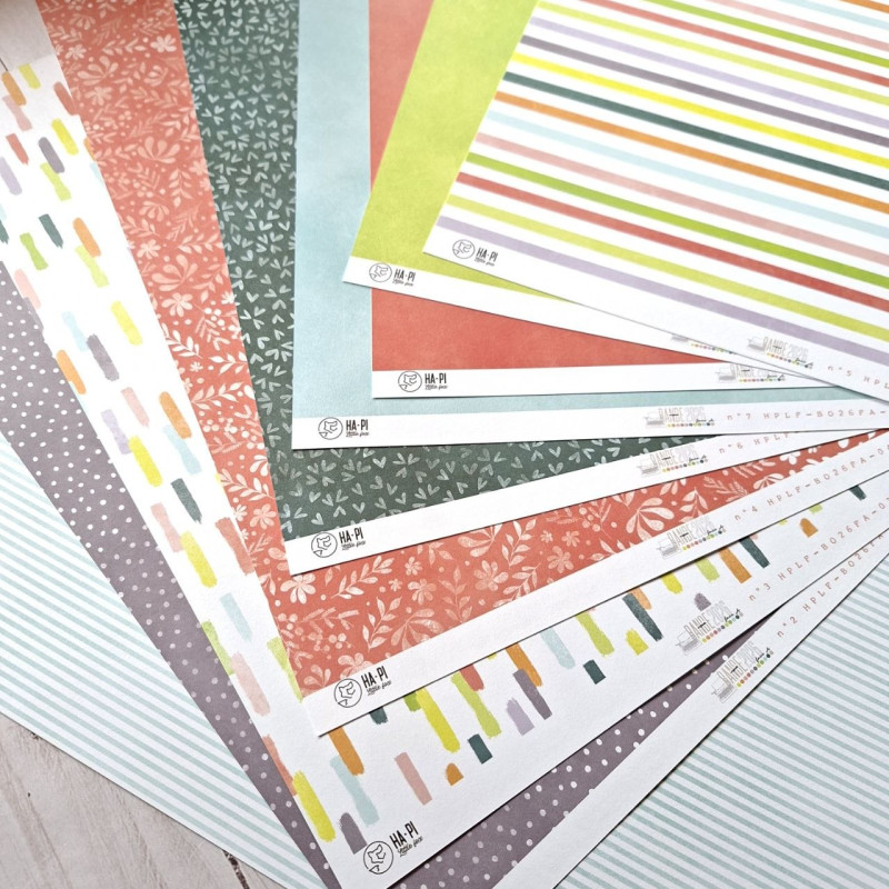 Collezione di carte composta da 9 fogli double face, cui 3 monocolore abbinati.