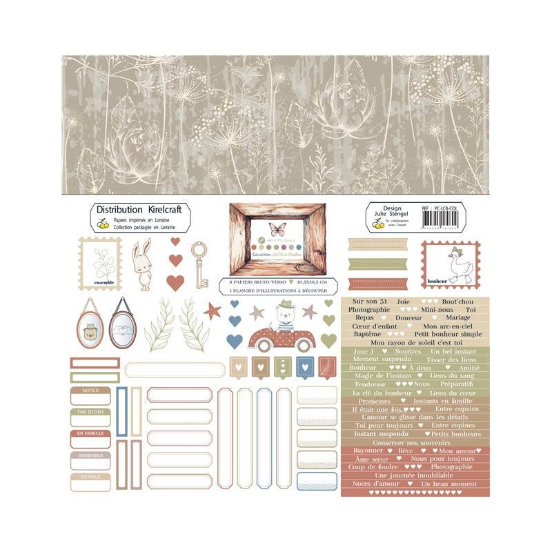 Pad di carte Mes P'tits Ciseaux, composto da 6 fogli doubleface + 1 plancia con ritagliabili