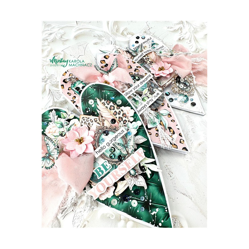 Elementi pretagliati abbinabili alla collezione Mintay Papers Lady's Secret.
