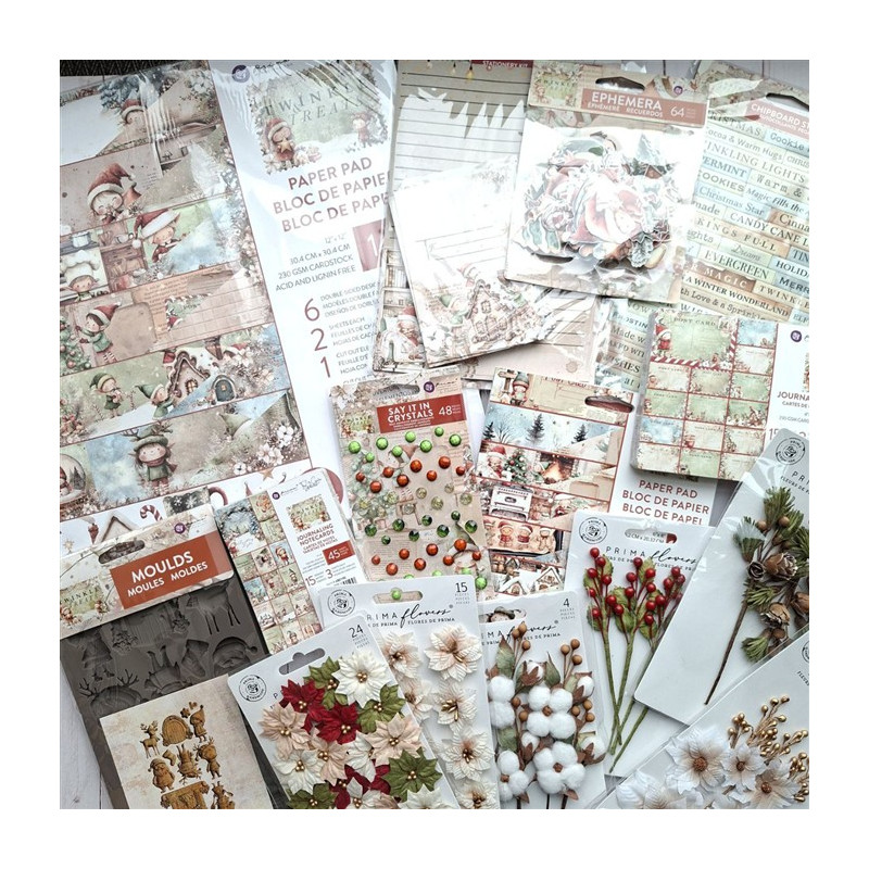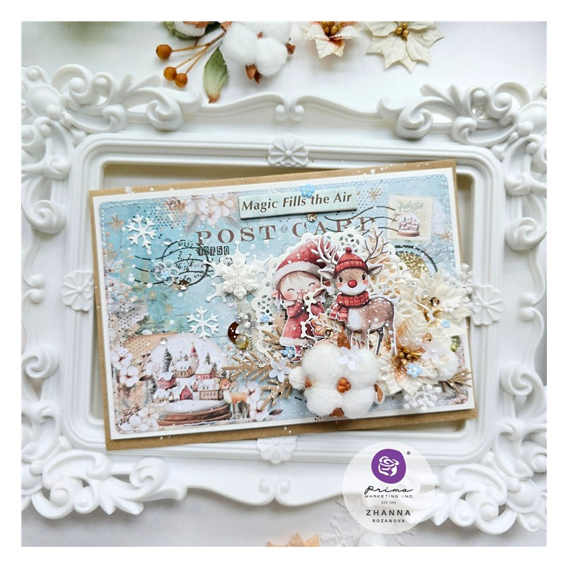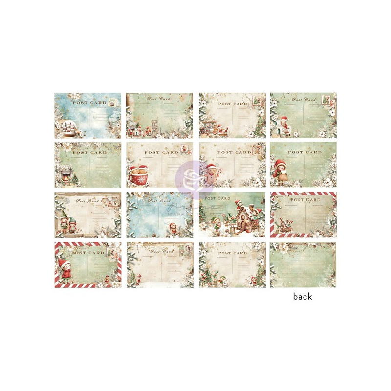 Il blocco di carta 4x6pollici (10x15 cm circa) è ricco di motivi in stile cartolina: ogni foglio, delle dimensioni di un biglietto, presenta un mix di foreste invernali, casette di pan di zenzero, tazze di cioccolata calda e giocosi elfi, il tutto legato al calore dei dolci natalizi e all'allegria delle feste.