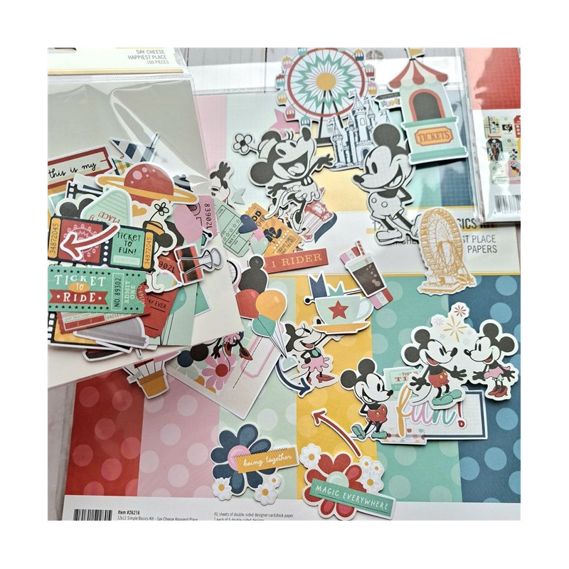Kit di elementi pretagliati, abbinato alla serie Simple Stories Say Cheese Happiest Place