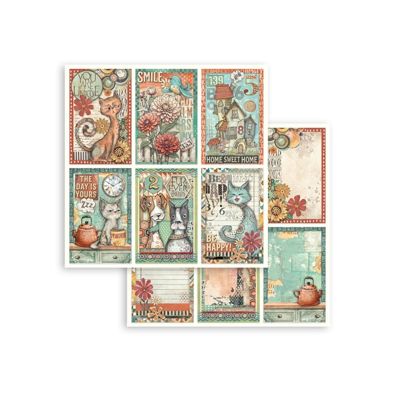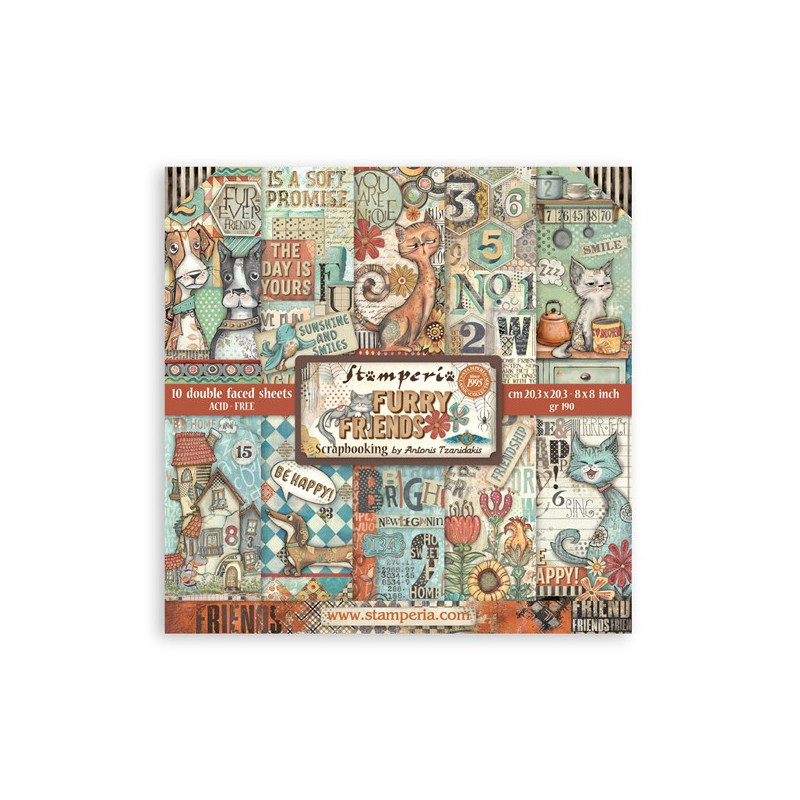 Kit composto da 10 fogli double-face, 10 diversi design, + bonus dietro le copertine, by Stamperia.