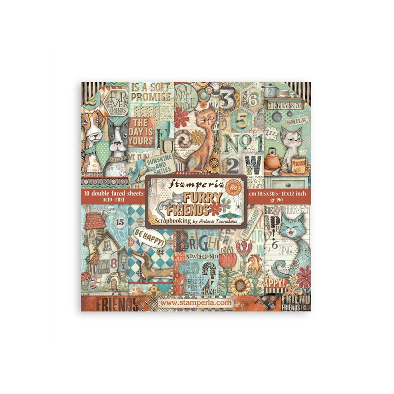 Kit composto da 10 fogli double-face, 10 diversi design, + bonus dietro le copertine, by Stamperia.