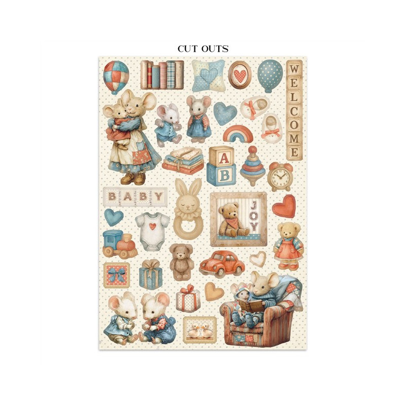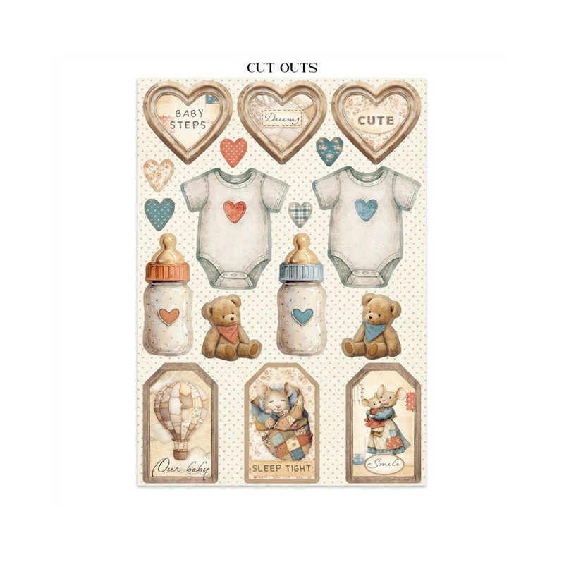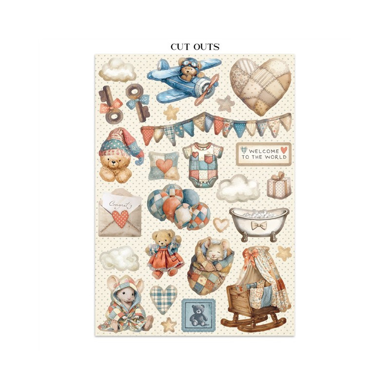 Kit per Journaling Book e Card Making composto da 8 fogli double-face 220gsm, 4 fogli di stickers adesivi 120gsm, 4 fogli double-face di ritagliabili 220gsm, by Stamperia.