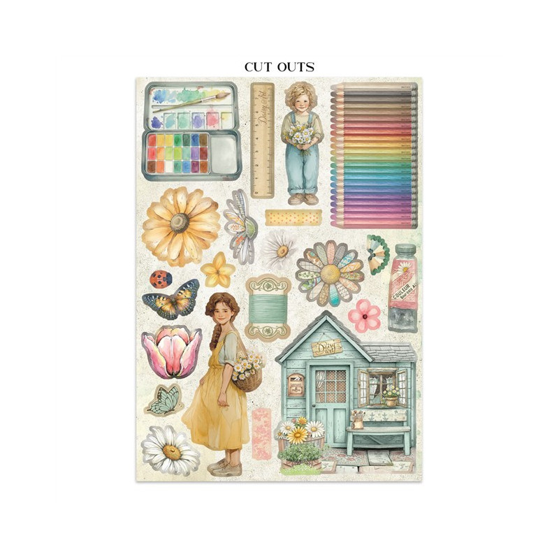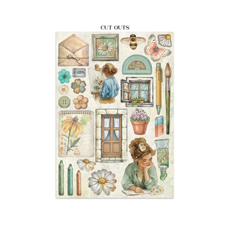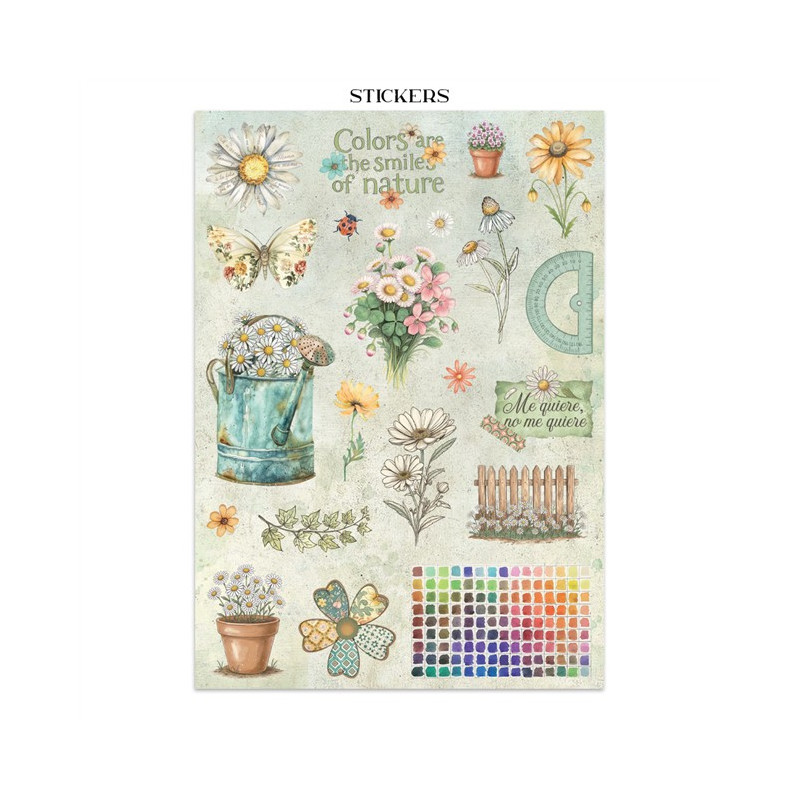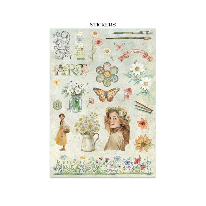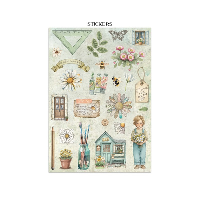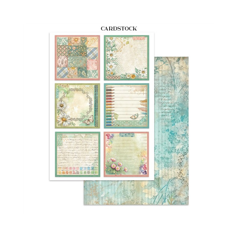 Kit per Journaling Book e Card Making composto da 8 fogli double-face 220gsm, 4 fogli di stickers adesivi 120gsm, 4 fogli double-face di ritagliabili 220gsm, by Stamperia.