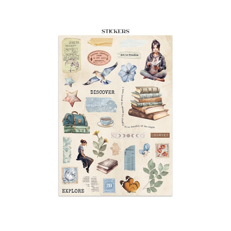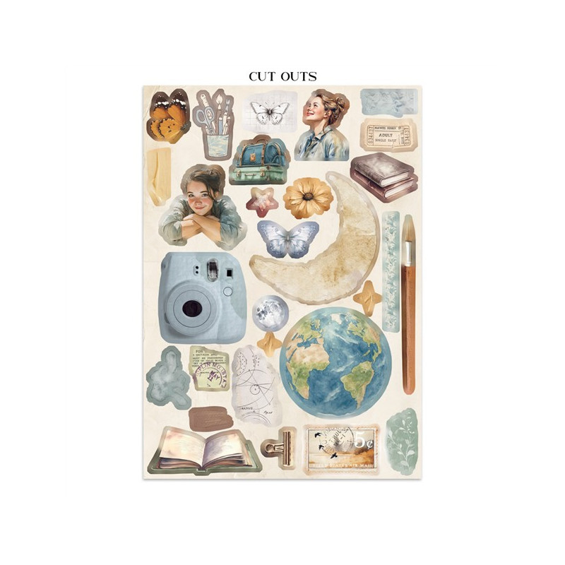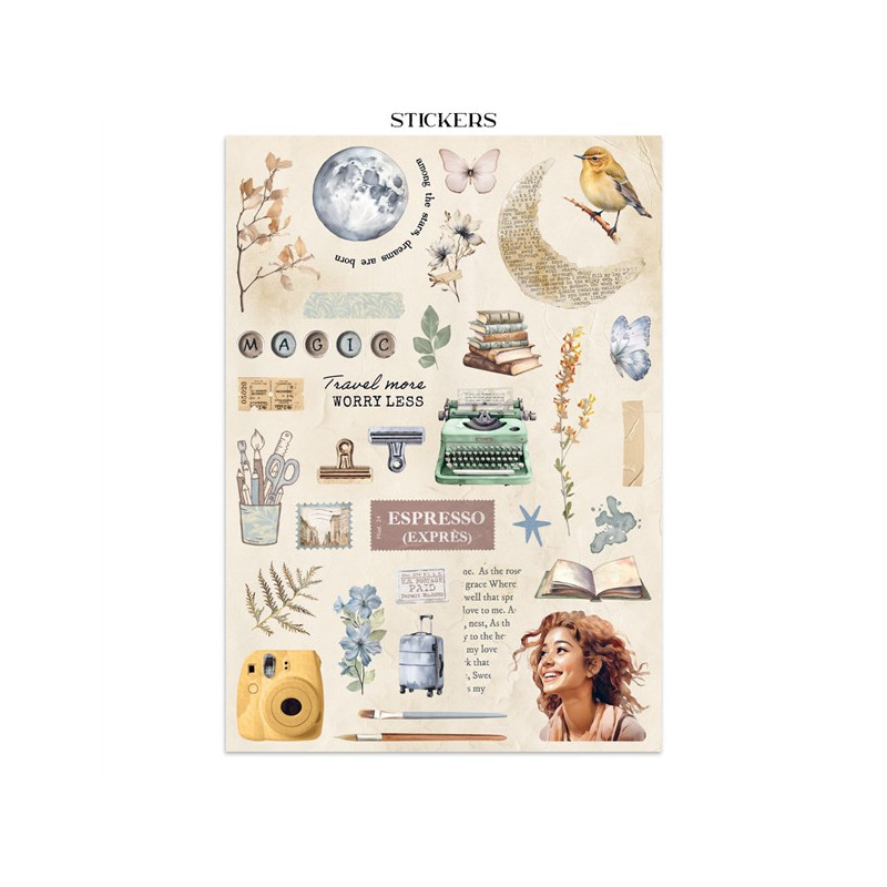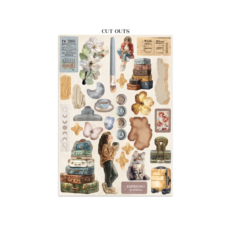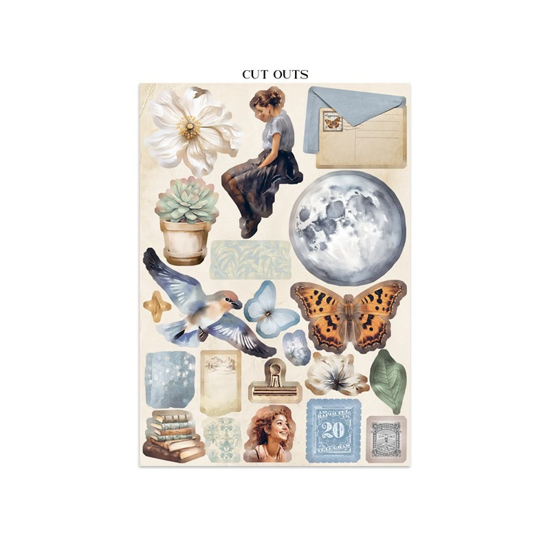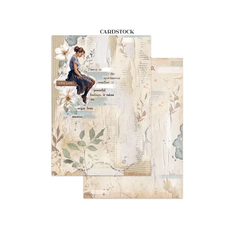 Kit per Journaling Book e Card Making composto da 8 fogli double-face 220gsm, 4 fogli di stickers adesivi 120gsm, 4 fogli double-face di ritagliabili 220gsm, by Stamperia.