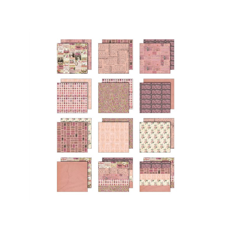 Questo kit è composto da 12 fogli double-sided in stile vintage. Toni rosa