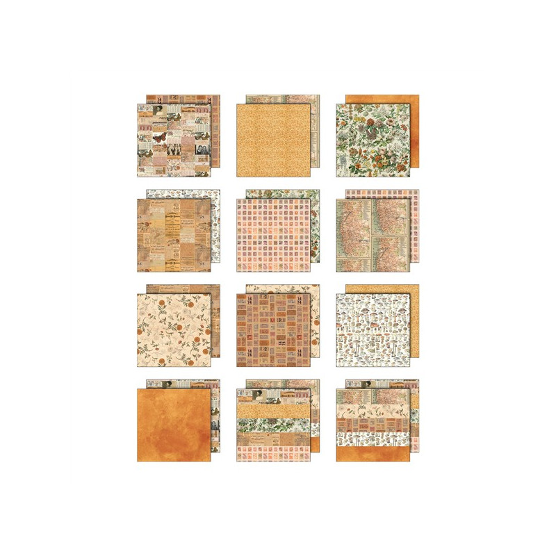 Questo kit è composto da 12 fogli double-sided in stile vintage. Toni arancioni