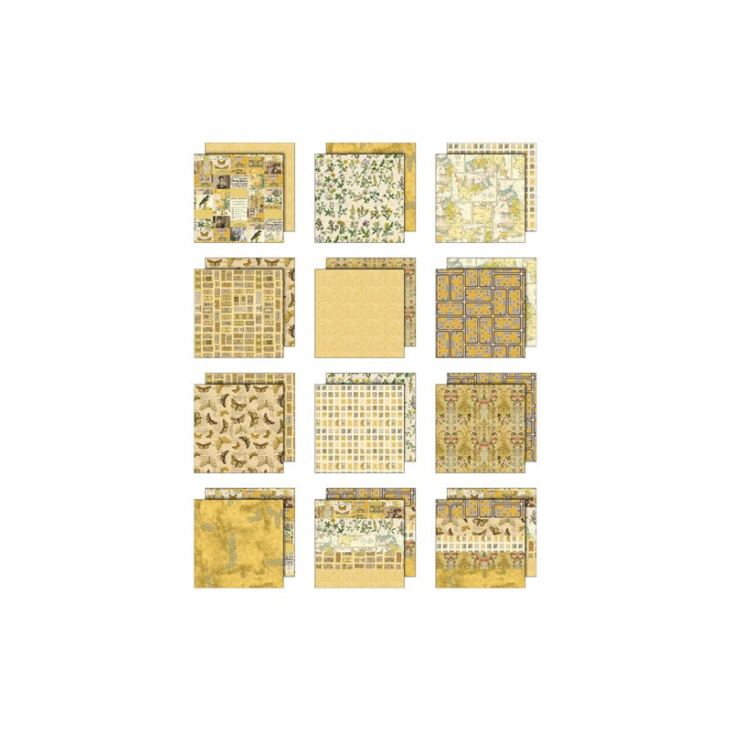 Questo kit è composto da 12 fogli double-sided in stile vintage. Toni gialli