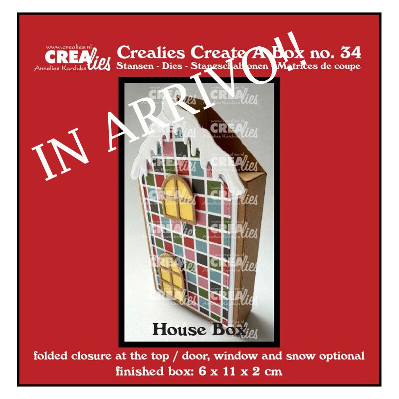 IN ARRIVO!! Crealies Create A Box No. 34 MEDIUM Flat Box House with Door Window & Snow