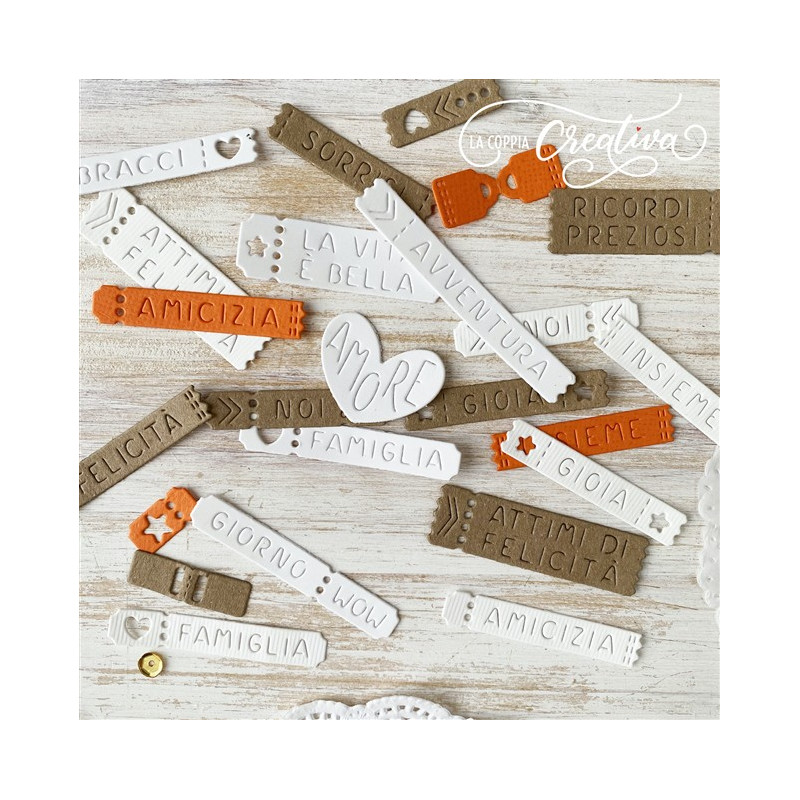 Fustelle sottili LA COPPIA CREATIVA fatte di metallo sottilissimo. Possono essere utilizzate con la Big Shot e altre macchine per tagliare tutti i tipi di carta e crepla.
