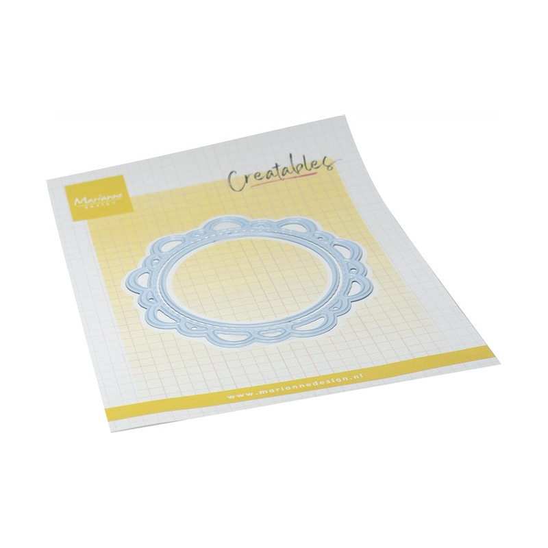 I Creatables sono fustelle che tagliano e/o embossano. Possono essere utilizzati con la Big Shot e altre macchine per tagliare tutti i tipi di carta e crepla. Ritaglia 1 cornice ronda e 1 cerchio liscio.