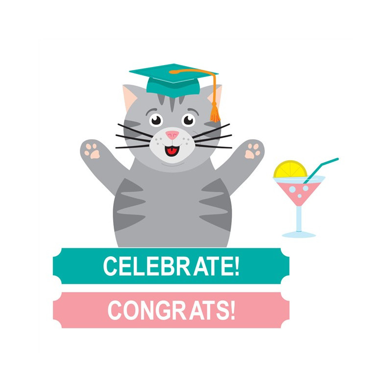 Gatto e striscione con cappello di laurea finiti: 9,80 x 9,20 cm