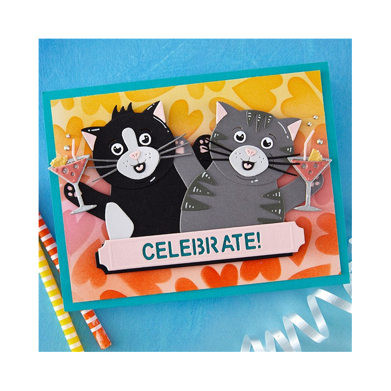 Le fustelle incise "Congrats Cat" fanno parte della collezione "Sending Hugs" di Simon Hurley. Crea tanti progetti celebrativi con questo set di 26 fustelle sottili in metallo! Crea il tuo punto focale, il gatto con le braccia aperte, in qualsiasi colore o tipo. Sono disponibili due diverse etichette con frasi: "Celebrate" e "Congratulazioni". Sono inclusi anche accessori come bevande/cocktail e forme di cibo.