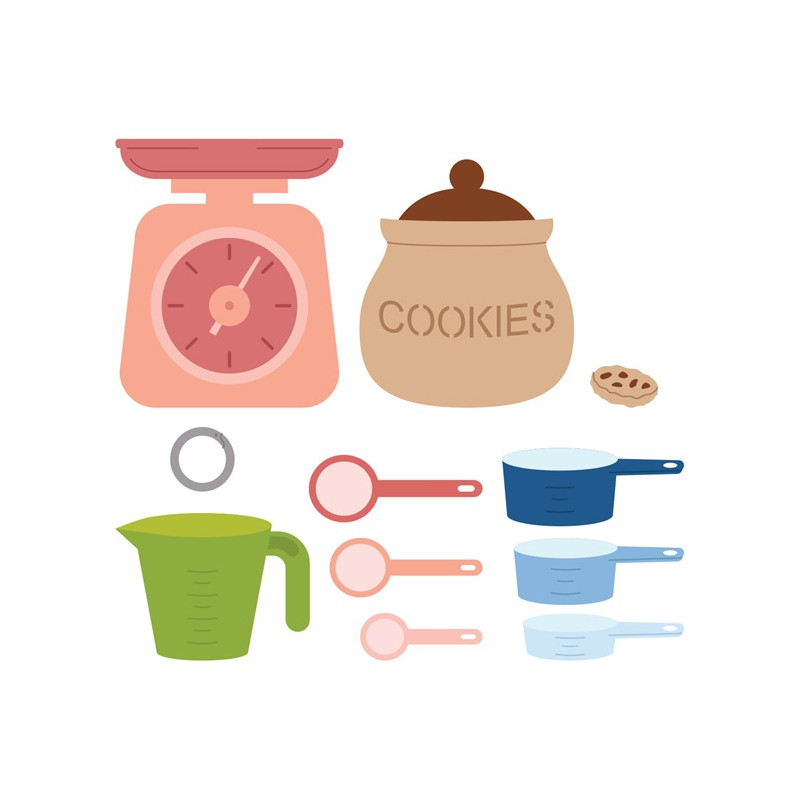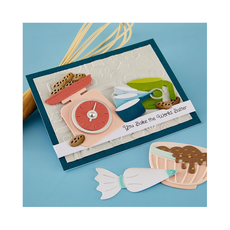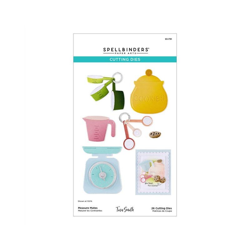 Le fustelle incise "Measure Mates" fanno parte della collezione "Make It & Bake It". Questo set di 26 fustelle sottili in metallo è davvero all'altezza delle sue dimensioni dettagliate, dei suoi misurini, cucchiai e barattoli? Usale singolarmente come elementi decorativi per i tuoi progetti o raggruppale insieme per un design divertente. Abbinale agli altri set della collezione.