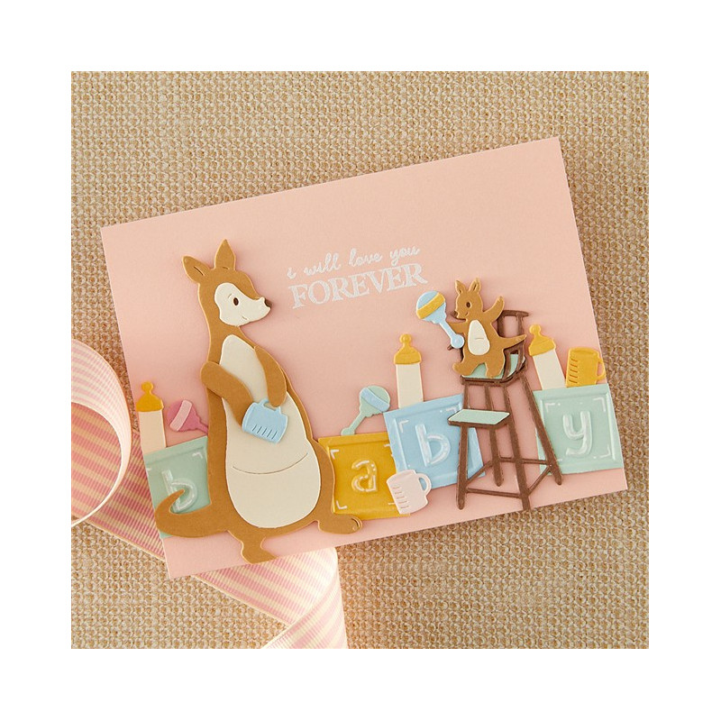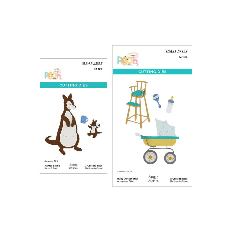 Le fustelle con i personaggi di Kanga e Roo appartengono alla collezione Say Cheese Classic Pooh Baby con Simple Stories. Assembla questo dolce Kanga e il suo piccolo Roo con questo set di 7 sottili fustelle in metallo. Include anche il bavaglino e una tazza di Roo per iniziare. Ulteriori accessori sono disponibili nel set S4-1520 Baby Accessories.
