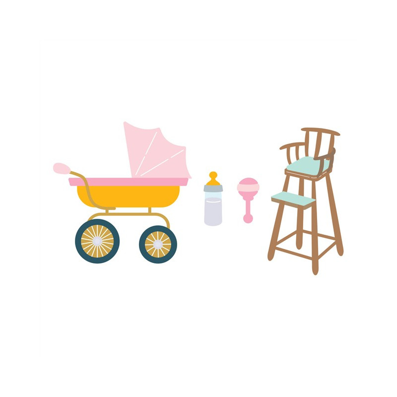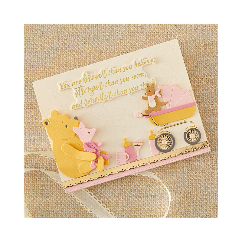 Le fustelle per accessori per neonati appartengono alla collezione Say Cheese Classic Pooh Baby con Simple Stories. Questo set di 11 fustelle sottili in metallo si abbina perfettamente al set S4-1519 Kanga & Roo per aggiungere altri accessori per neonati a Roo! Include una dolce carrozzina, un biberon, un sonaglio e un seggiolone dettagliato. Divertentissimo da aggiungere come tocco finale a qualsiasi biglietto per neonati, segnaposto o pagina di scrapbooking.