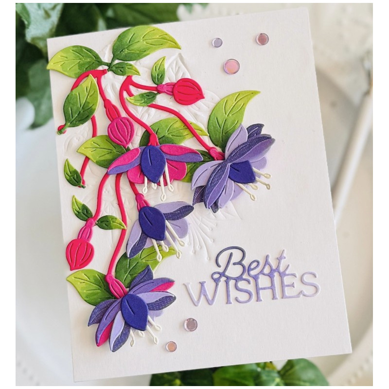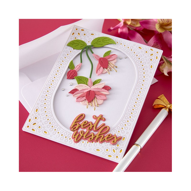 Le fustelle incise Magical Fuchsia fanno parte della collezione Magical Fuchsia di Alex Syberia Designs. Una volta assemblate, queste otto fustelle in metallo sottile creano due splendidi fiori di fucsia e un rametto che si abbinano perfettamente agli altri set della collezione.Dimensioni:
