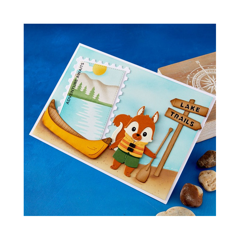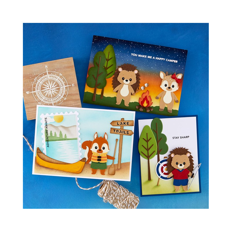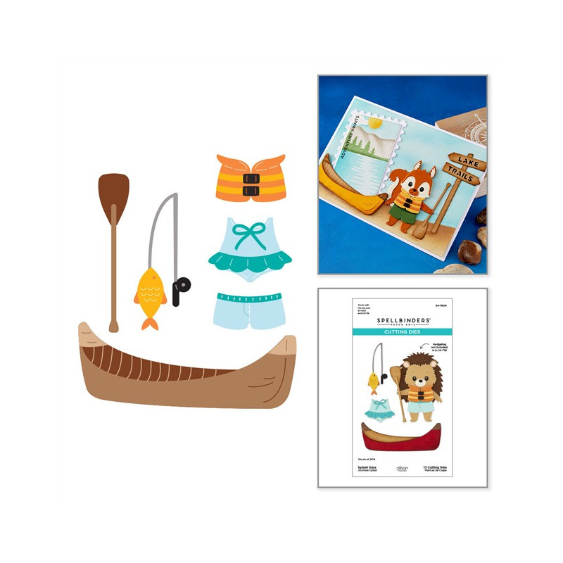 Le fustelle Splash Days Etched Dies fanno parte della collezione Summer Camp di Allison Frazier. Questo set di 13 fustelle in metallo sottile permette di creare divertenti attività acquatiche: basta aggiungere simpatici animaletti del bosco (S4-1503 Trailside Trio e/o S5-738 Woodland Trio)!
