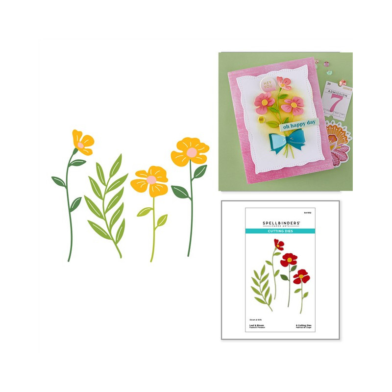 Le fustelle Leaf & Bloom Etched Dies fanno parte della collezione Poppy Song. Questo set di otto fustelle in metallo sottile permette di creare tre graziosi fiori con stelo e un rametto di foglie. Raggruppate i fiori e il rametto per creare un delizioso bouquet o usateli singolarmente per un elemento decorativo.