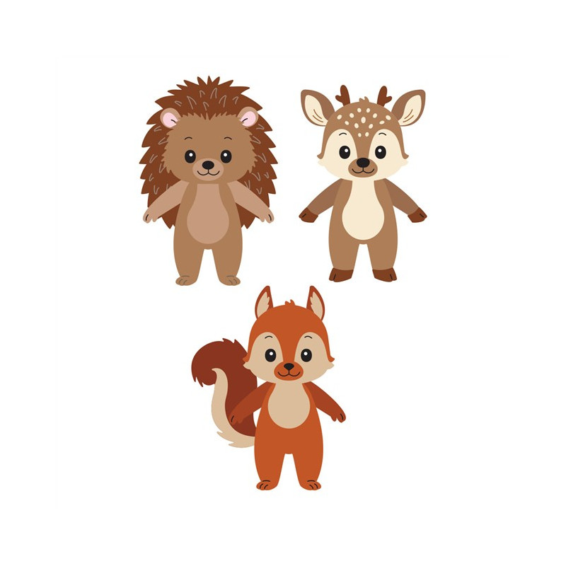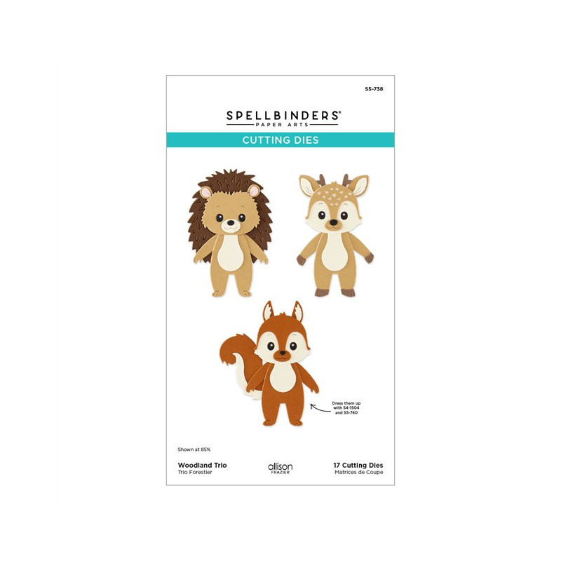 Le fustelle Woodland Trio Etched Dies fanno parte della collezione Summer Camp di Allison Frazier. Questo set di 17 fustelle in metallo sottile permette di creare tre simpatici animaletti del bosco: un riccio, uno scoiattolo e un cerbiatto.