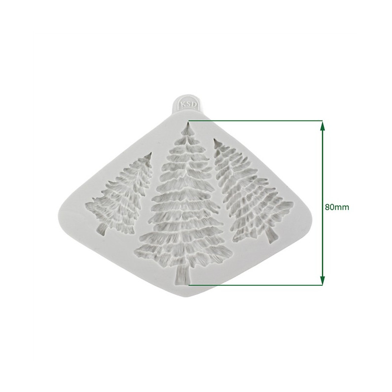 Crea splendide e nitide decorazioni boschive con questo dettagliato stampo in silicone con tre sagome di abeti di diverse dimensioni.