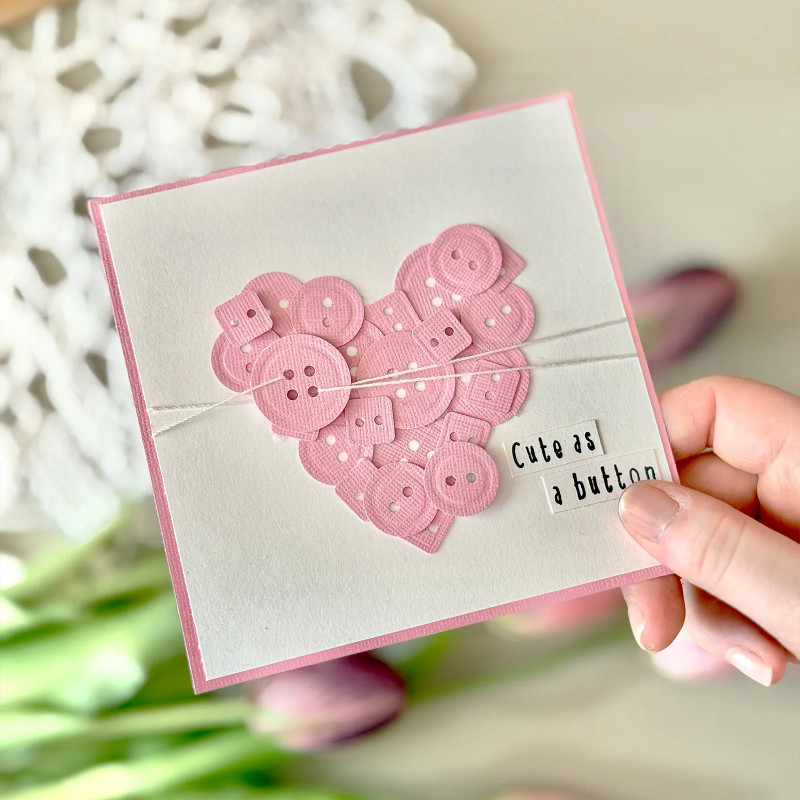 Con questo grande perforatore embossing (per artigianato) di Vaessen Creative, con una sola mano si può punzonare tre bottoni con rilievo (⌀ 2,6 cm, ⌀ 2 cm e 1,2 x 1,2 cm) in carta, cartoncino, foto e altro ancora.