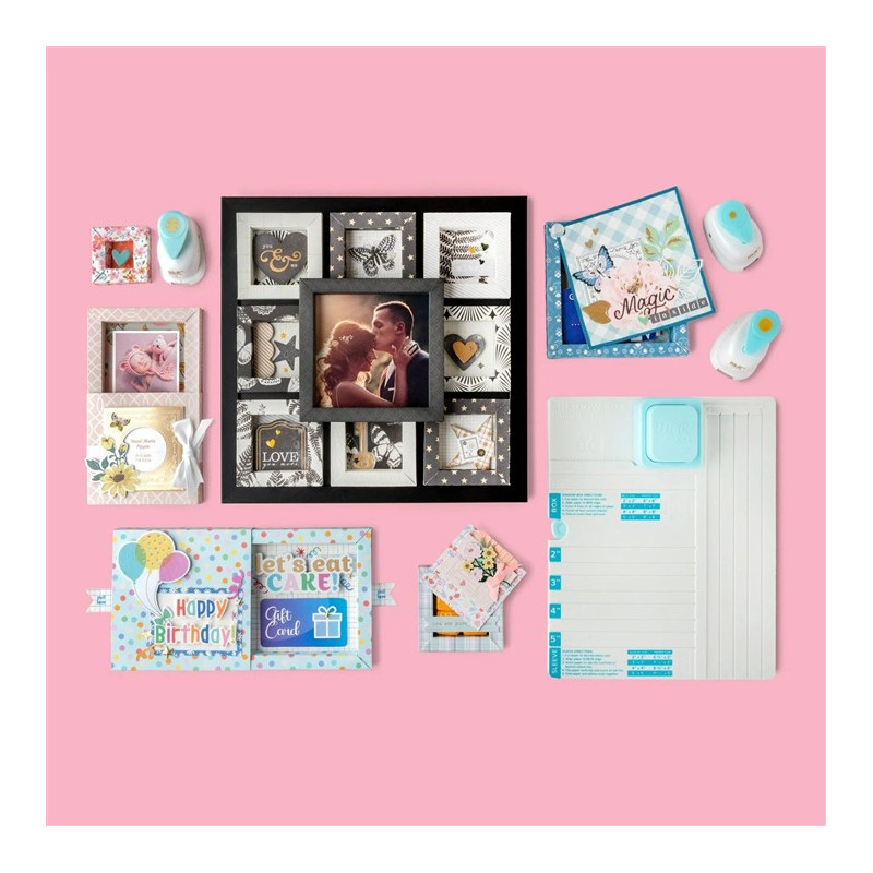 Questo strumento è facile da usare, ti guida attraverso il processo con una semplice cordonatura, punch angolari precisi e un assemblaggio semplice. Con una guida integrata per abbinare il formato della carta di partenza, è un gioco da ragazzi. Segui le istruzioni passo passo incluse o guarda il video dimostrativo per suggerimenti e trucchi extra.