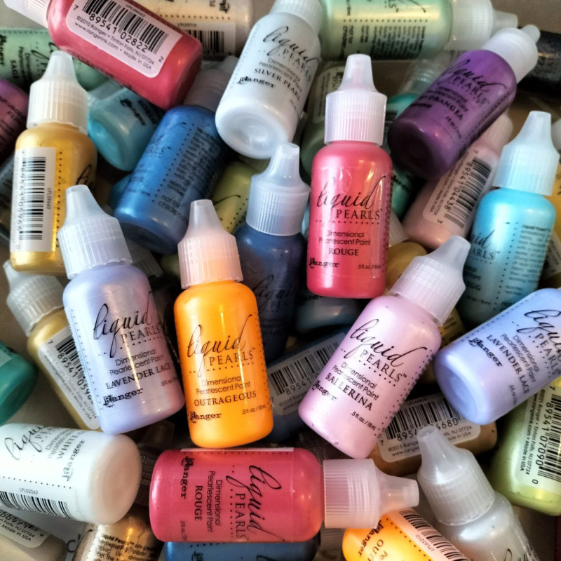 Le Liquid Pearls sono una pittura perlescente tridimensionale che asciuga in modo permanente se utilizzata su carta e tessuto.