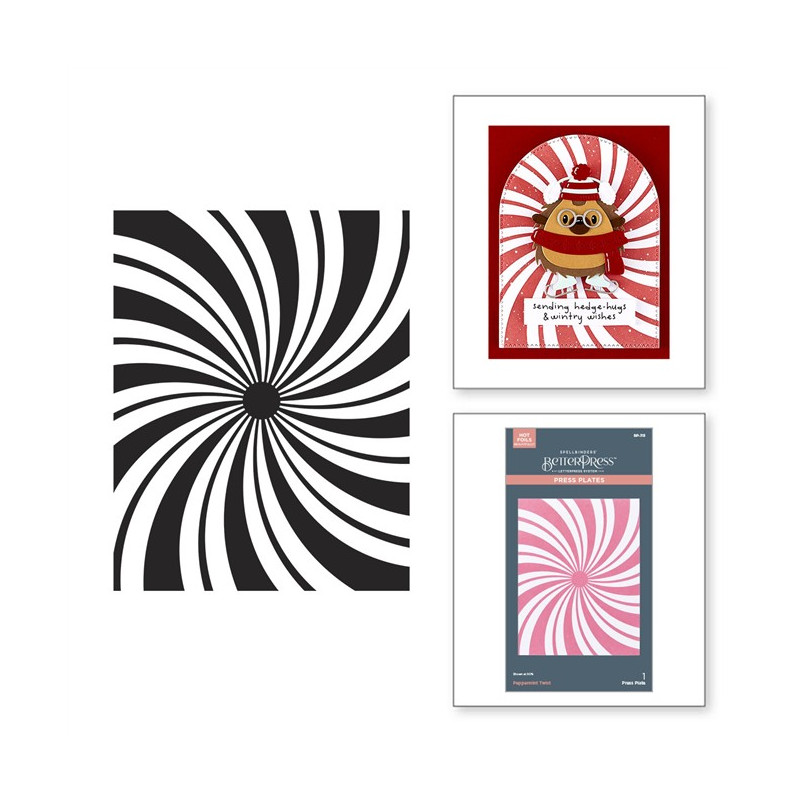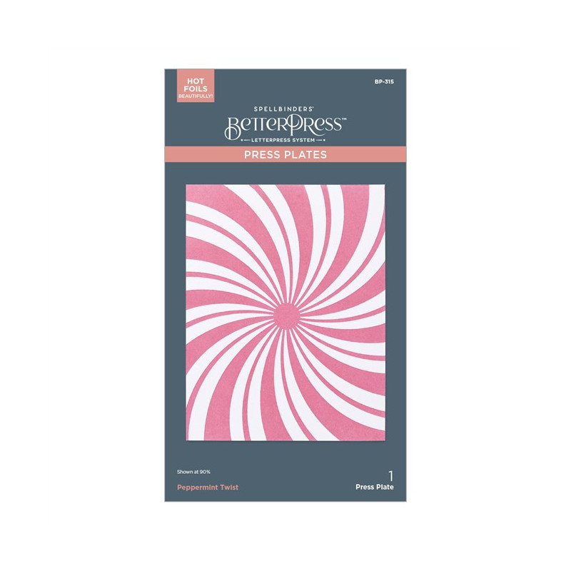 La piastra Peppermint Twist crea un design stravagante e audace a forma di caramella alla menta. Uno sfondo divertente per qualsiasi progetto natalizio.