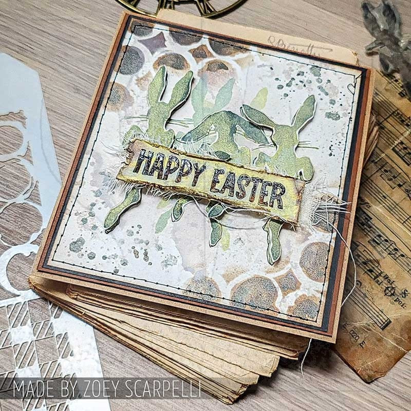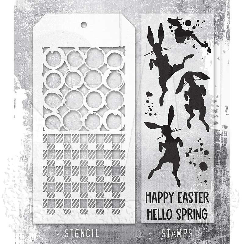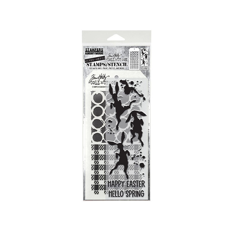 Stampers Anonymous Mixed Media Bunny Hop Tim Holtz Clear Stamp and Stencil