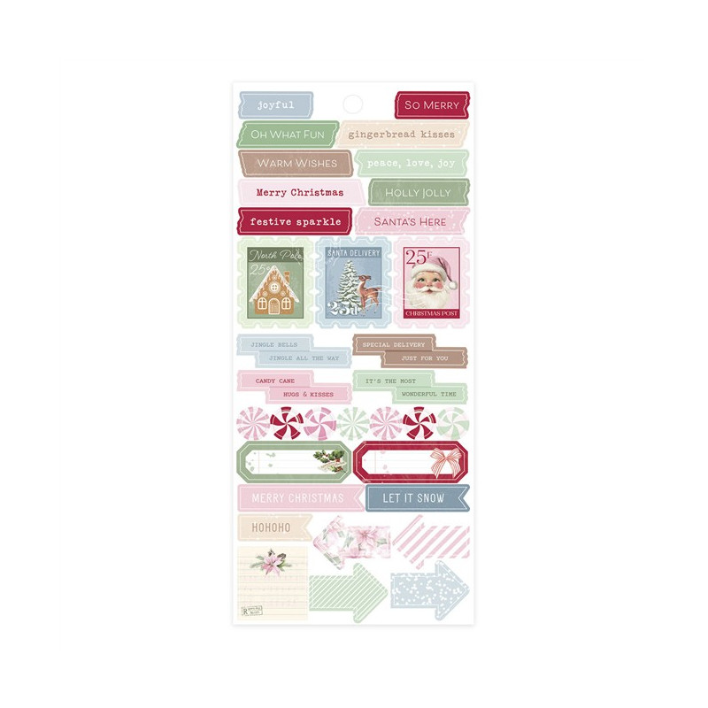 Kit di 6 fogli di stickers, abbinati alla collezione Rosie's Studio Peppermint Twist