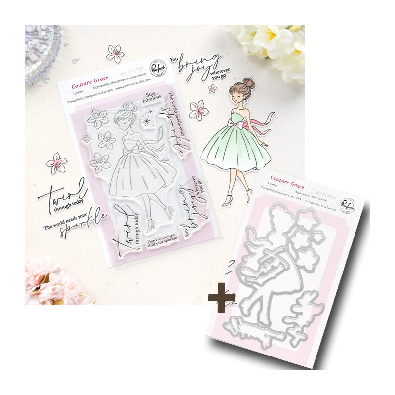 PREORDINE! Pinkfresh Studio The Couture Edit SET Clear Stamps + Die Couture Grace