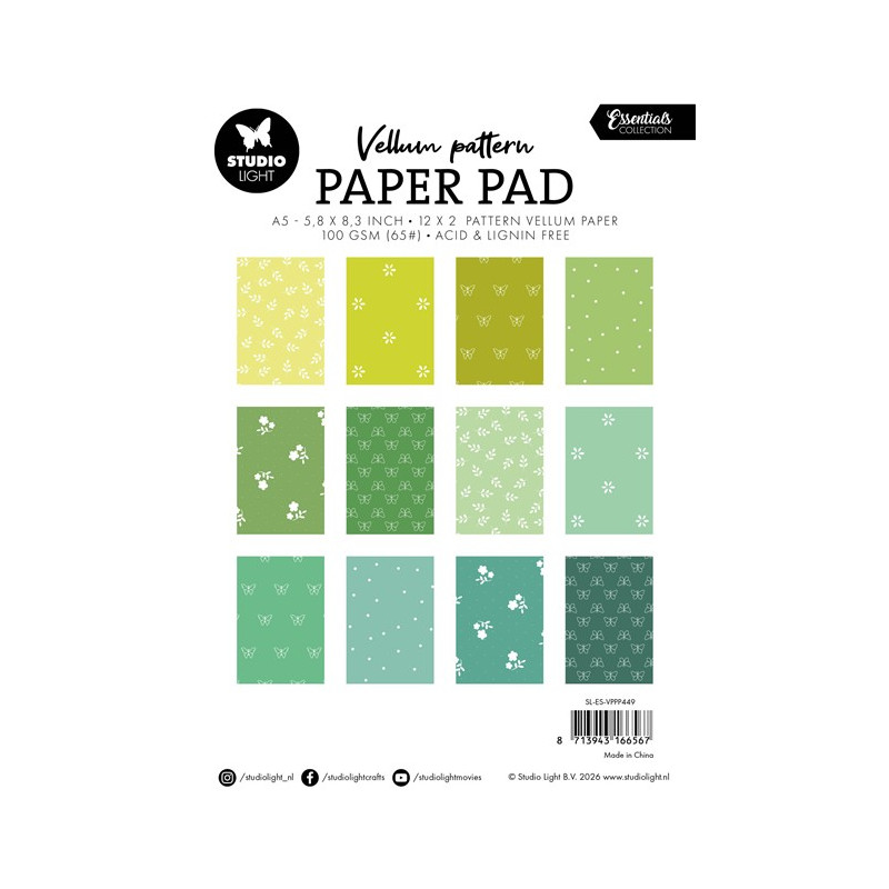 Studio Light Shades of Green A5 Vellum Pattern Paper Pad
