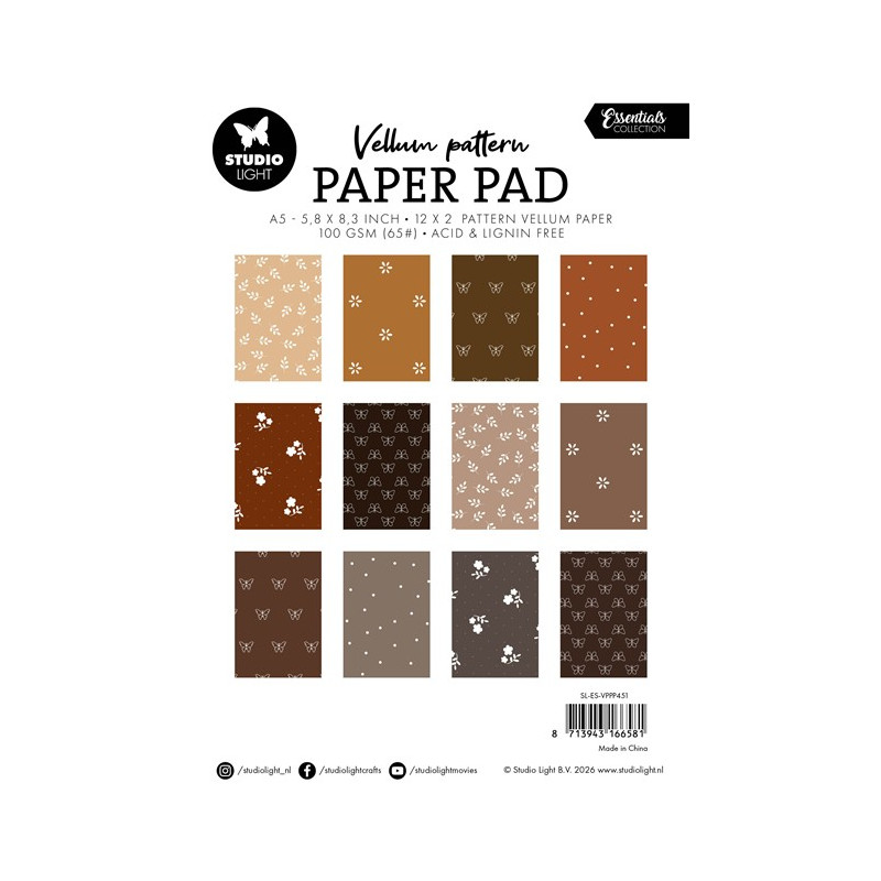 Studio Light Shades of Brown A5 Vellum Pattern Paper Pad