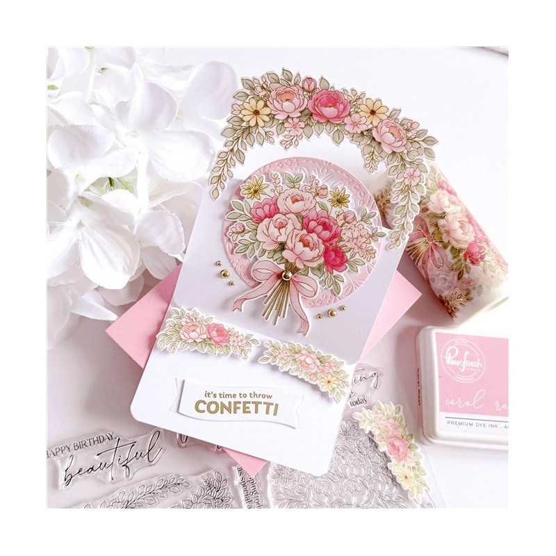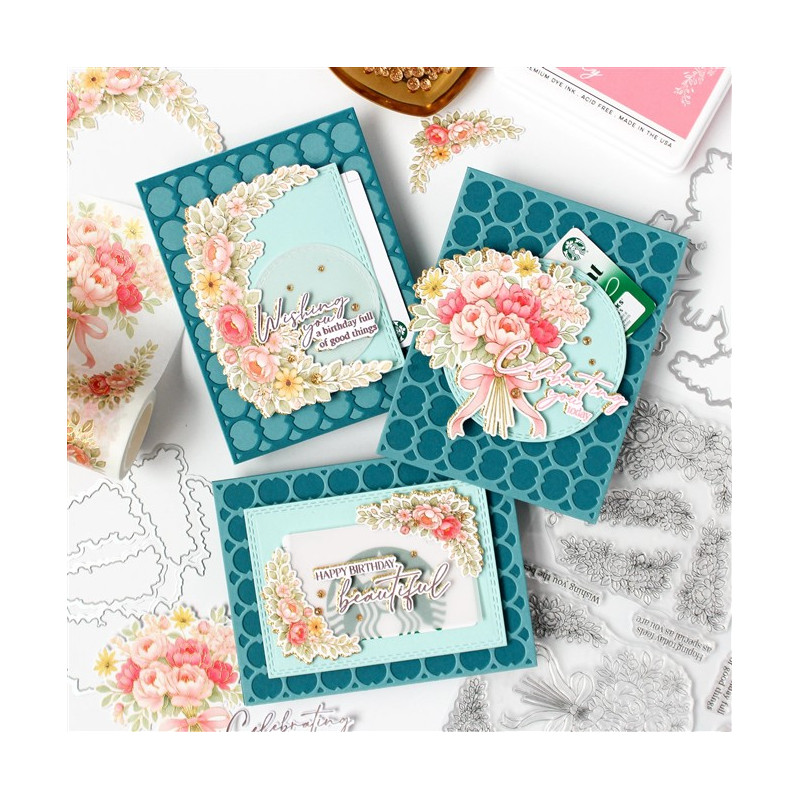 Aggiungete un tocco di lussureggiante bellezza floreale ai vostri progetti con la carta washi Celebrate in Blooms, disegnata da Kinnari Zaveri. Questo splendido design presenta un bouquet centrale ricco di fiori, insieme a eleganti composizioni floreali e ghirlande, perfetti per creare biglietti sofisticati con il minimo sforzo.